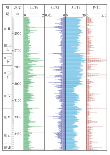 元素的聚集和分布与水盆深度具有一定的相关性。这一性质主要是元素在沉积过程中机械分异、化学分异和生物化学分异作用的结果。上文所述, Sr/Ba、Zr/Al反映古水深变化, 比值随着水体的增加而变化, 其中Sr/Ba随着水深增加而增大, Zr/Al随着水深增加而减小。