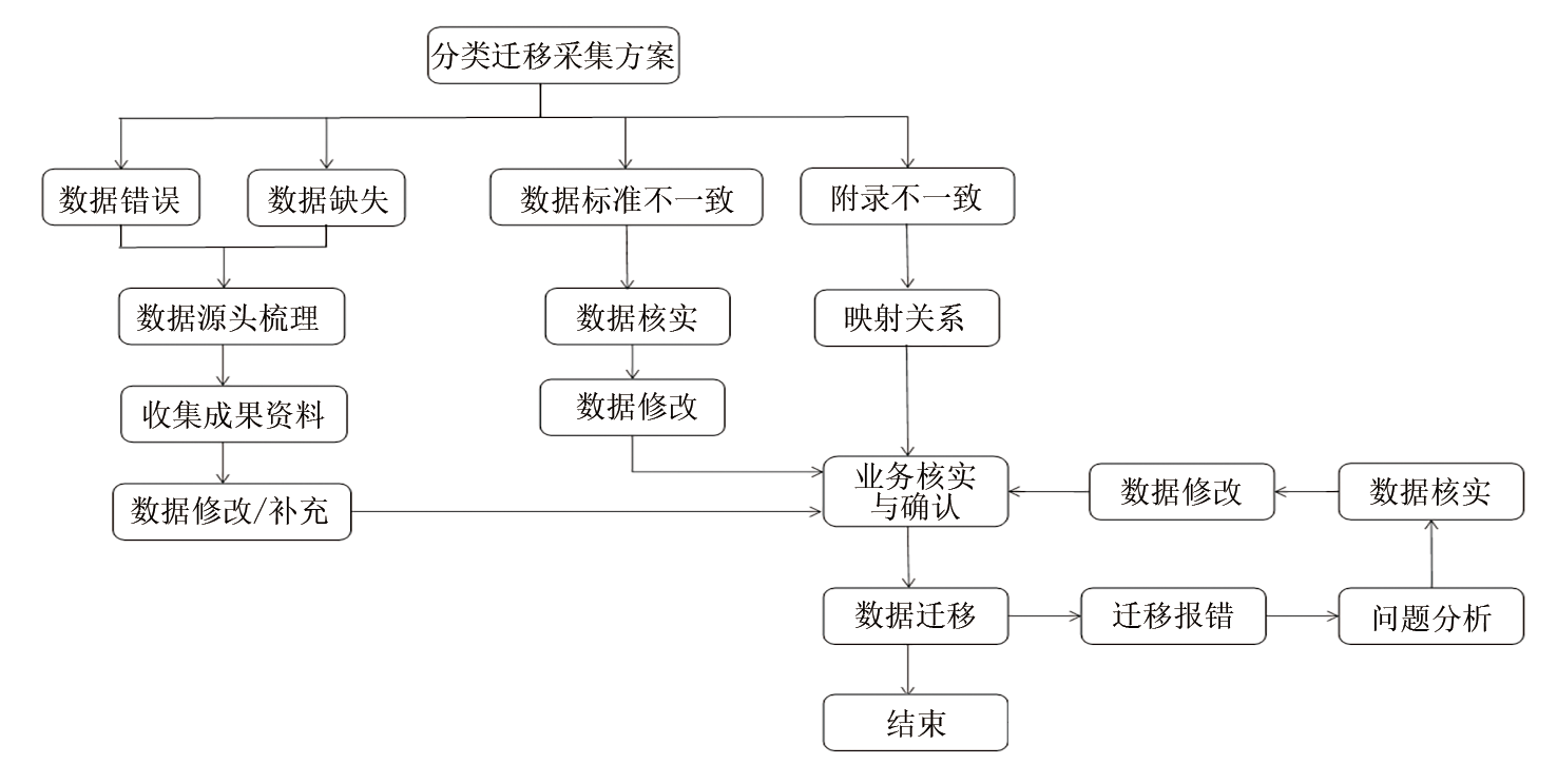 针对上述问题, 为实现录井老井数据的高效准确迁移, 渤海油田制定了一套既符合新数据采集标准要求又尊重老井数据特点的录井老井数据迁移采集流程(图3)。