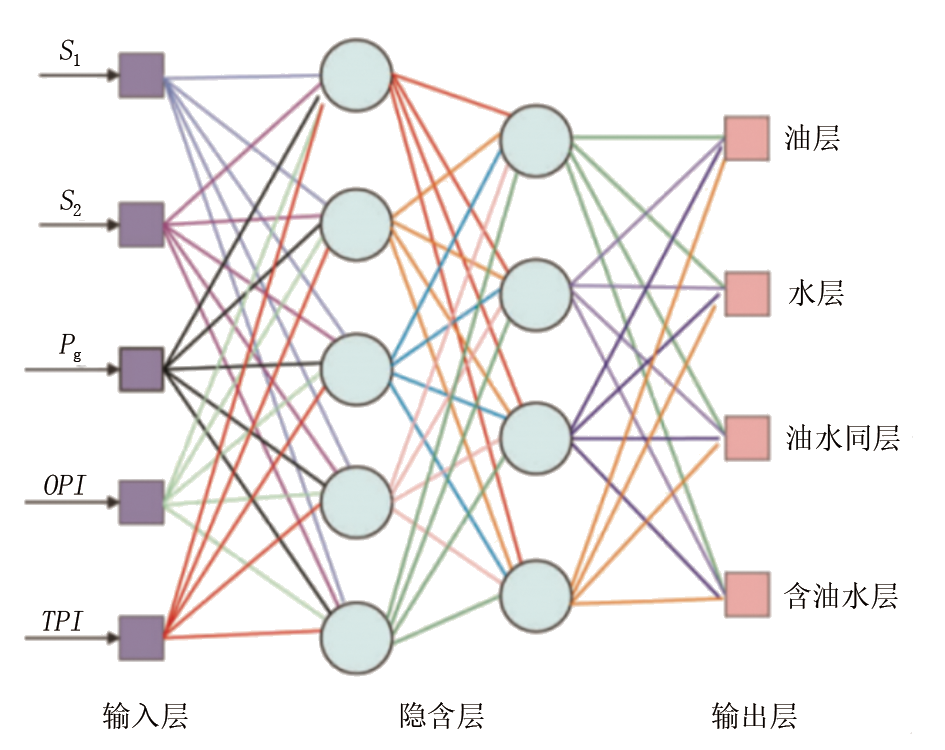 数据治理的最终目标是实现企业数据的数字化转变, 并充分挖掘数据中的巨大价值, 进而实现数据智能化应用。渤海油田录井专业数据通过技术和管理上的数据治理, 实现了数据采集标准化, 提升了数据采集的时效性、规范性和准确性, 但在数据价值挖掘上仍显不足。数据挖掘技术作为近年来依托计算机发展起来的新技术手段, 在各个行业中获得了广泛应用[7, 8], 其优势主要体现在不依靠人的经验, 而是完全依靠计算机来实现智能化规律发现, 非常适用于数据治理后的业务数据价值挖掘提升。如图8所示, 以岩石热解录井数据为基础, 通过数据挖掘技术中的BP神经网络算法[9, 10], 仅需输入采集数据, 便可实现对流体性质的智能判别。