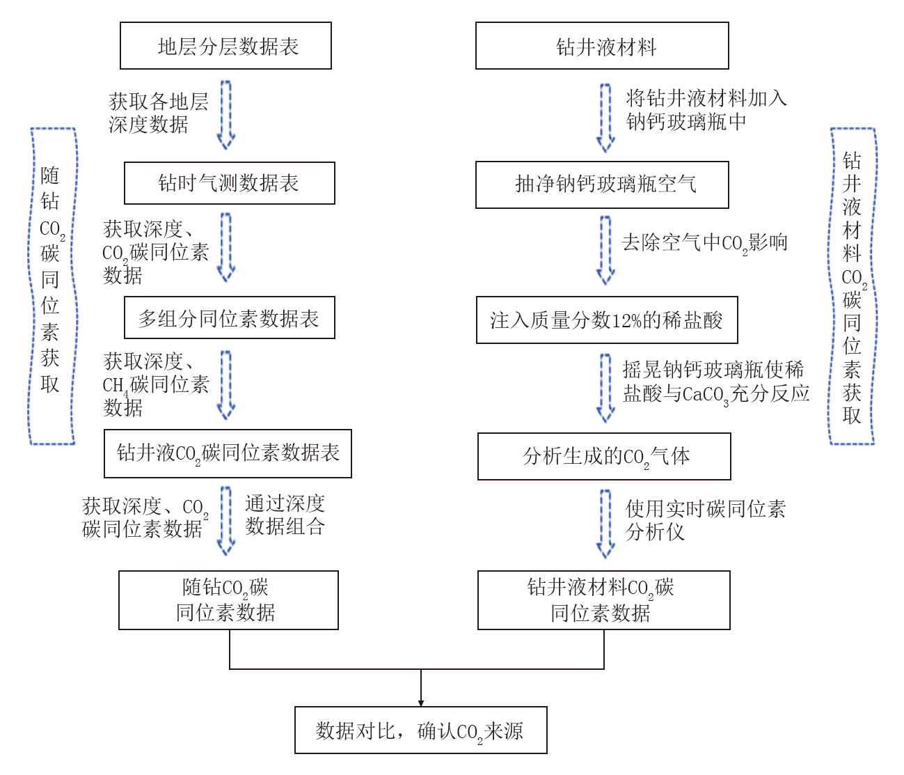 (4)摇晃钠钙玻璃瓶使稀盐酸与CaCO3充分反应, 生成的足量CO2气体直接使用碳同位素分析仪检测分析, 即可获得来源于钻井液材料中的
