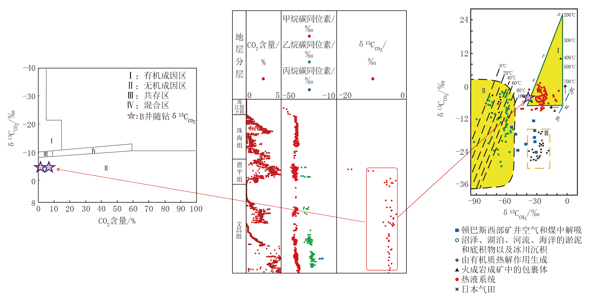 本研究有效解决了钻井液的干扰问题, 同时揭示了恩平凹陷有机成因CO2与阳江东凹幔源CO2的成因差异, 对判断油气来源、成藏模式等有重要意义。