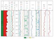 该井段元素录井显示Si元素含量最高, 主要分布在48%~56%之间; 页岩硬度主控元素中Fe、Al、K、Rb波动较小, Ca和Cr起伏较大; 页岩塑性系数主控元素中V波动较小, Ti、Cd、Nb、Ni起伏较大。页岩硬度主要分布在200~400 MPa之间, 页岩塑性系数主要分布在1.17~3.47之间。工区页岩主体属于中软3级的低塑性岩石, 据此推荐采用4刀翼, 16 mm切削齿, 中低密度布齿的PDC钻头, 平均机械钻速达到了7.68 m/h, 为钻井提速提效提供了有效支撑。