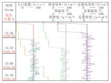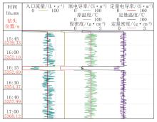 为测试不同型号录井仪和钻机与出口钻井液参数定量监测系统兼容性, 在现场动态试验成功后, 适用性试验分别选取3种型号的录井仪和3种型号的钻机进行配套测试。测试结果为:不同型号录井仪和钻机与出口钻井液参数定量监测系统配套使用正常。在测试过程中, 由于一口井采用的50钻机未配备缓冲罐, 出口钻井液直接流入振动筛过渡槽, 按传统方式将传感器安装在过渡槽, 导致测试数据失真严重; 而出口钻井液参数定量监测系统, 将采集钻井液管线安装在高架管出口, 正常采集钻井液, 稳定测量出钻井液温度、密度和电导率, 与传统方式对比(表2), 效果显著, 得到了甲方的认可。