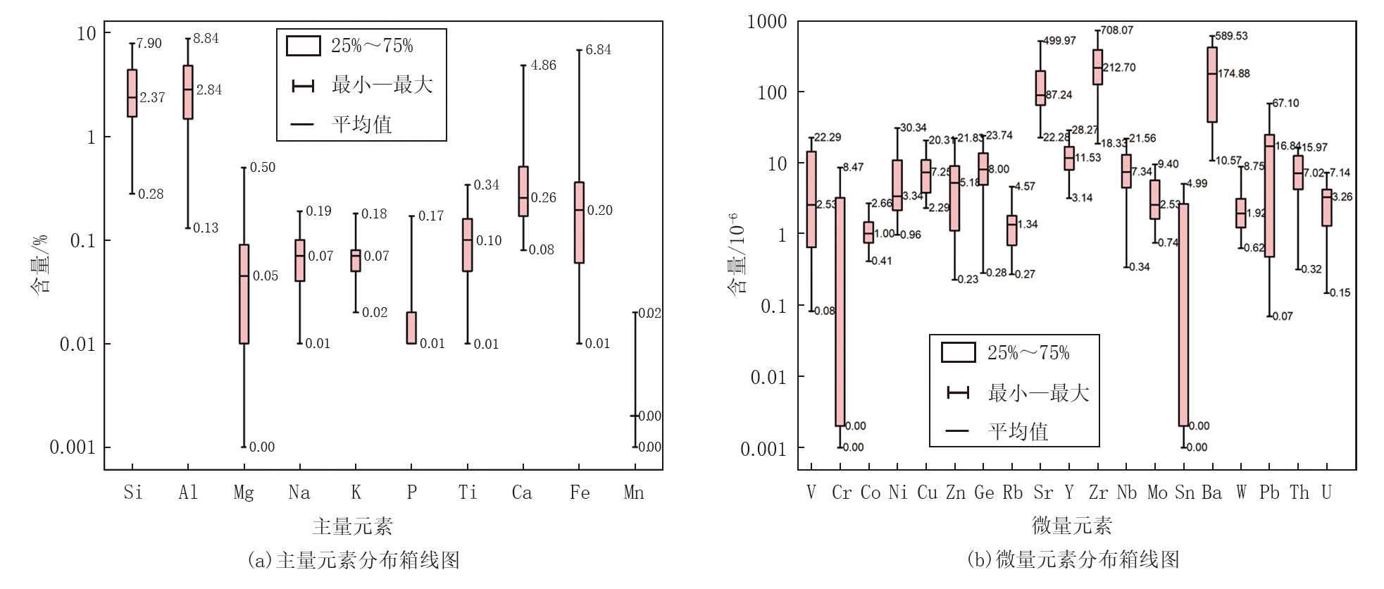 微量元素含量(Y微)293.63× 10-6~2 870.73× 10-6, 平均0.79%。其中含量较高的是Zr(18.33× 10-6~708.07× 10-6, 平均212.70× 10-6)、Ba(10.57× 10-6~589.53× 10-6, 平均174.88× 10-6)、Sr(22.28× 10-6~499.97× 10-6, 平均87.24× 10-6)、Pb(0.07× 10-6~67.10× 10-6, 平均16.84× 10-6)、Y(3.14× 10-6~28.27× 10-6, 平均11.53× 10-6), 其他微量元素含量则较少, 均小于10× 10-6(图2b)。微量元素中, Zr、Ba的高值区与煤层顶底板砂岩发育带吻合, 指示陆源碎屑输入事件, 为灰分动态变化提供了地球化学证据。