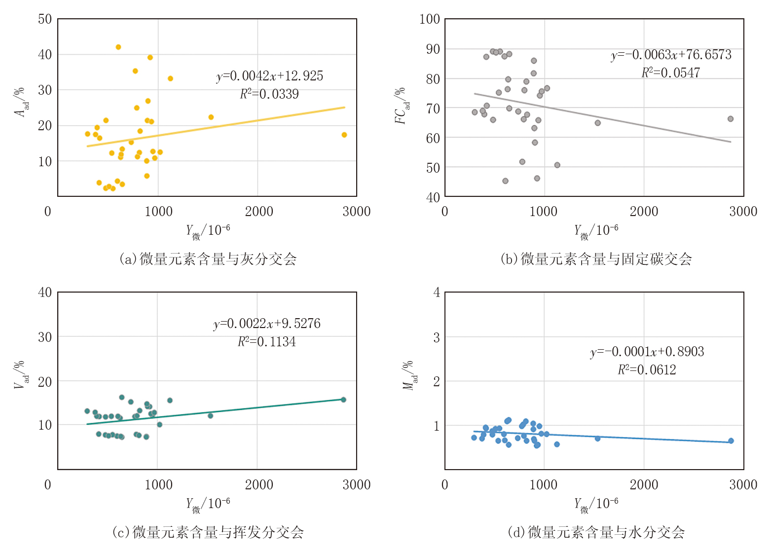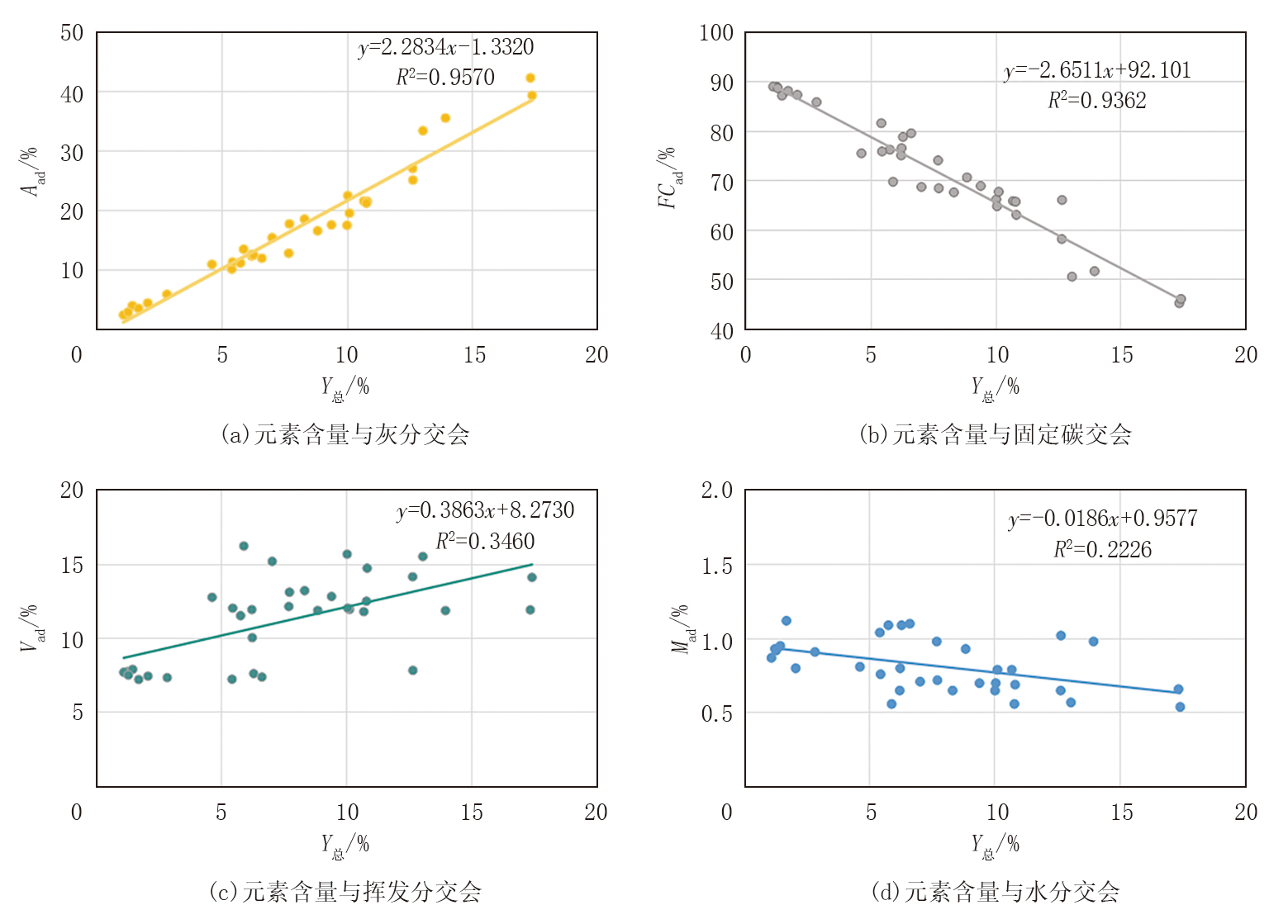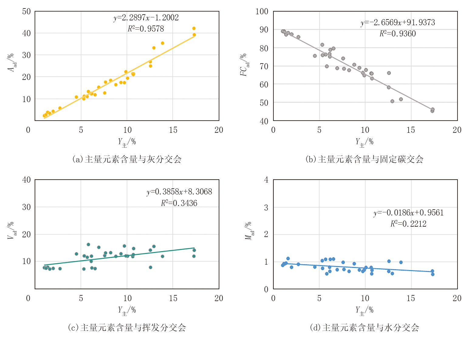式中:Aad为灰分含量, %; FCad为固定碳含量, %; Y主为主量元素含量, %。
