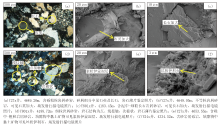 选取3口井56块岩心样品进行区域岩石学特征研究。通过岩心观察发现, 流二段岩性主要为灰色细砂岩、灰黑色含砾砂岩、深灰色泥岩。含砾砂岩中发现搅混构造, 泥岩层段可见水平层理。岩石薄片鉴定及场发射扫描电镜下岩心分析表明:碎屑组分主要为岩屑及石英, 少量长石, 其中岩屑以变质岩岩屑为主, 少量岩浆岩、泥化粒、沉积岩、钙化粒岩屑(图2a); 矿物成分以石英为主, 含有少量长石、菱铁矿、云母、方解石等(图2b、图2c); 流二段岩性以岩屑砂岩及长石岩屑砂岩为主, 碎屑颗粒形状以次棱-次圆状为主, 接触方式为点、线接触(图2d), 分选以中-差为主, 胶结类型为孔隙式与压嵌式, 结构成熟度中等; 填隙物中的杂基主要由黏土矿物及少量细粉砂碎屑组成, 黏土矿物主要为伊蒙混层、高岭石、伊利石、绿泥石(图2e、图2f)。综合分析认为, 研究区流二段处于早期成岩阶段。