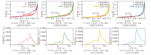 N2吸附实验主要用于测量孔径2~50 nm的介孔孔隙结构。从图7可以看出, 吸附曲线表现出不同程度的滞后现象, 在相对压力(实验过程中的平衡压力与饱和压力的比值)较低处(0~0.4), 4块样品的N2吸附曲线与脱附曲线基本重叠, 不产生迟滞回环, 说明较小孔径范围内的孔隙多为一端封闭的不透气孔; 而在相对压力较高处(0.4~1.0), 4块样品的N2吸附分支曲线与脱附分支曲线不重合, 形成明显的迟滞回环。在相对压力接近0.5时, Y 24x-3号样与Y 24x-22号样的脱附分支曲线出现吸附量下降的拐点(图7a、图7b), 表明此类样品存在孔径较大的孔隙; 而Y 24x-14号样与Y 24x-29号样的脱附分支曲线较为平滑, 没有出现吸附量下降的拐点(图7c、图7d), 表明此类样品的孔径较小。整体上4块样品的N2吸附曲线表现为在相对压力接近1.0时吸附分支曲线急剧升高, 脱附分支曲线则缓慢下降, 说明4块样品的孔隙均以平板状宽狭长缝为主, 孔径在50~55 nm的孔隙(宏孔)贡献最大(图7e-图7h)。