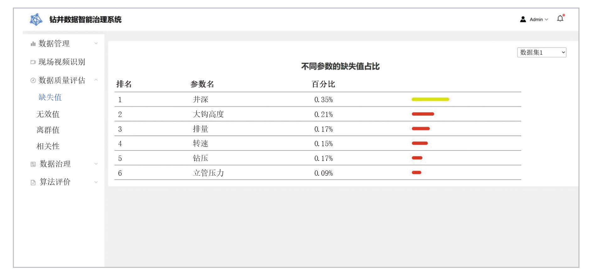 数据质量评估作为整个治理过程的基础环节, 在华北油田试运行期间对数据进行了系统评估。首先, 针对数据中的缺失值、无效值及异常值进行检测, 通常能够有效识别出数据中存在的缺失值、无效值和异常值。统计数据显示, 缺失值、无效值及异常值平均占比约为15%。通过数据补齐与异常校正手段, 这些问题得以有效处理, 显著改善了数据的完整性与一致性。